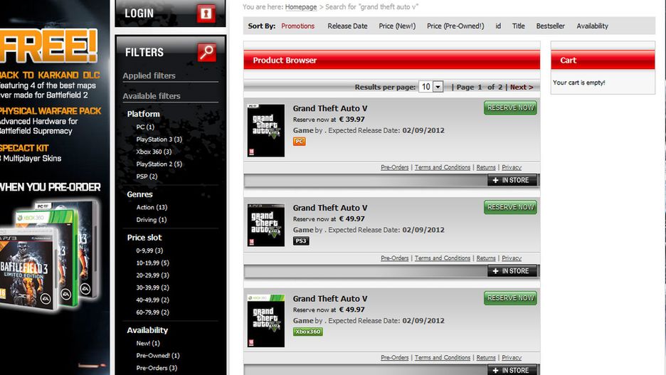 Irlandzki oddział sklepu GameStop twierdzi, że zna datę premiery GTA 5
