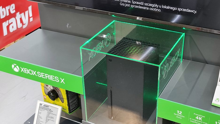 Gdzie można oglądać Xboksa Series X? Otóż w całej Polsce - jeśli w waszym mieście jest Media Markt, to konsola też powinna być wystawiona. Są wystawione w "ekspozytorach znajdujących się na szczycie alejki w sekcji gamingowej".