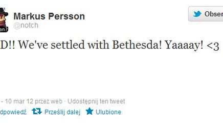 Ugoda zakłada, że my damy im znak handlowy, zatrzymamy nazwę i nie stworzymy konkurenta dla Elder Scrolls używając tej nazwy. W sumie wyrok jest kuriozalny - Bethesda nijak nie mogła sobie rościć prawa do słowa "scrolls", tylko dlatego, że ma serię gier, która nazywa się podobnie. A jednak te prawa dostała. Mojang tymczasem i tak zrobi swoją grę. Jak twierdzi Carl Manneh z Mojang są z tego zadowoleni, bo nigdy nie chodziło im o znak towarowy.