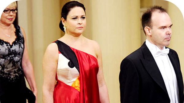 Zagadka: Kim może być dama ubrana w tak niecodzienną suknię podczas imprezy w fińskim pałacu prezydenckim?