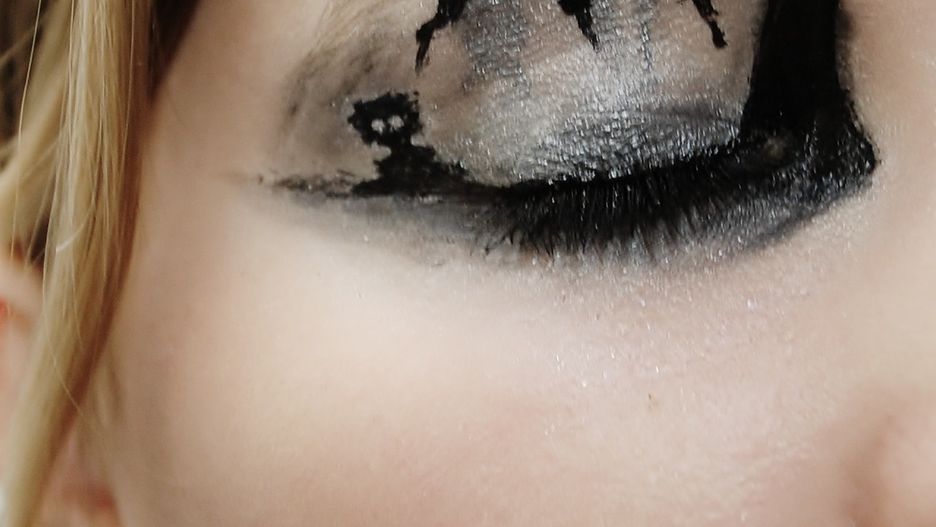 I started off with a base. Honestly for this, I just used a thin layer of chapstick. Then put a fine layer of the white shadow on. Added in some black pencil for the trees (heat up the pencil using a lighter for about 10 seconds). Then went back over it with the white. For the foreground objects, I used pearl black liquid eyeliner Zaczęłam od pokładu. Użyłam cienkiej warstwy pomadki. Potem solidna warstwa białego cienia. Czarną kredką robiłam drzewa (podgrzałam ją za pomocą zapalniczki przez 10 sekund). Potem dodałam trochę bieli. Obiekty na pierwszym planie zrobiłam czarnym perłowym płynnym eyelinerem.