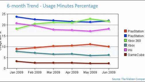 Na 360 gra więcej mężczyzn, PS3 jest w tym przypadku neutralne, Wii to domena kobiet. Najwięcej grają oczywiście nastolatkowie (12-17), którym przypada 25% czasu z grami zmierzonego w czerwcu przez Nielsena.