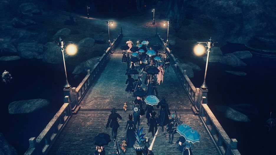 Tłum ubranych na czarno postaci przeszedł po krainie Eorzea, by uczcić zmarłą koleżankę z gildii.