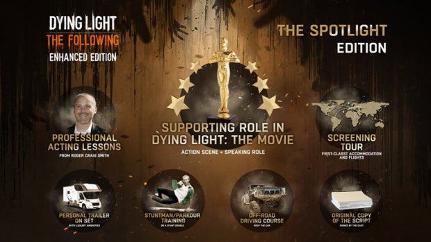 Uspokajam Was, że z Waszymi oczami wszystko w najlepszym porządku, a w tytule nie ma błędu i naprawdę mówię o 10 000 000$. Tak jest, za trochę ponad (wg. kursu z 13 lutego) 39 milionów złotych możecie kupić sobie rolę w filmie (scena akcji i kilka dialogów), profesjonalny kurs aktorstwa u Rogera Craiga Smitha, własną garderobę na planie zdjęciowym, trening kaskaderski/parkourowy, kurs jazdy samochodem typu off-road, 10 vipowskich biletów na premierowy pokaz filmu, bilety w pierwszej klasie i najlepsze hotele na całej trasie premierowej filmu, podpisaną przez najważniejsze osoby kopię scenariusza, rolę Kyle'a Crane'a w grze, cztery kopie Dying Light: The Following Enhanced Edition i sesję makijażu zombie, kiedy tylko chcesz (jak znalazł na Halloween). To tyle z tych większych rzeczy, nie licząc wszystkich małych smaczków po drodze, jak blask flashy, stanie w jednym rzędzie z aktorami, obecność w magazynach plotkarskich, sława i... Sława, bo pieniądze musiałeś wydać. To wszystko za 10 milionów dolarów, jedynie w brytyjskiej sieci Game. Ale spokojnie, nie ma blokad terytorialnych, więc jeżeli jesteście zainteresowani, to radziłbym się pośpieszyć, gdyż dostępny jest tylko jeden jedyny egzemplarz.