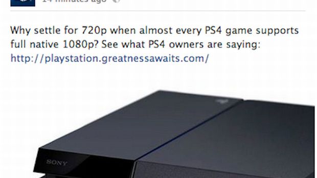 Złośliwość pod adresem rozdzielczości w 720p, która dominuje w tytułach startowych na Xboksie One, została szybko usunięta z FB. Oczywiście trudno liczyć na pakt pokojowy, bo Sony i Microsoft nie przegapią żadnej okazji, by sobie dołożyć (tak jak kiedyś Sega dokładała Nintendo), ale skoro przynajmniej w czasie premiery miało być grzecznie i elegancko, to można było jeszcze kilka godzin wytrzymać. Albo przynajmniej nie usuwać wpisu, skoro mleko i tak się wylało.
