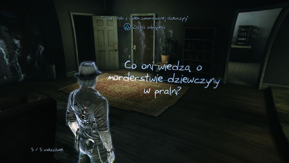 Duch i mrok Streszczając Murdered w jednym zdaniu, jest to gra o chodzeniu z nosem przy ziemi i zbieraniu wszystkiego, co się da. A jest tego sporo, bo właściwie całą fabułę wpakowano w kilkusekundowe filmiki retrospekcyjne i dokumenty. O żonie Ronana czytamy, o zabójcy też, o przeszłości Ronana również. Trudno mieć dobre zdanie o designerach, gdy całą historię głównego bohatera opowiadają w postaci tekścików do odczytania w menu. Takich nieobowiązkowych rzeczy do znalezienia jest ponad 150, więc szukania jest sporo.
