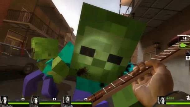 Ale jest jeszcze trzeci wariant, który najbardziej mi się podoba: podmienić tekstury zombie z L4D na te z Minecrafta, ale reszte plansz zostawić tak, jak były: