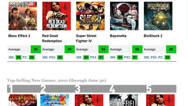 Pierwsze półrocze 2010 za nami. Serwis Metacritic zajmujący się agregowaniem ocen z recenzji gier przygotował małe podsumowanie. Najlepiej oceniane tytuły? Super Mario Galaxy 2 oraz Mass Effect 2 ex aequo z Red Dead Redemption.