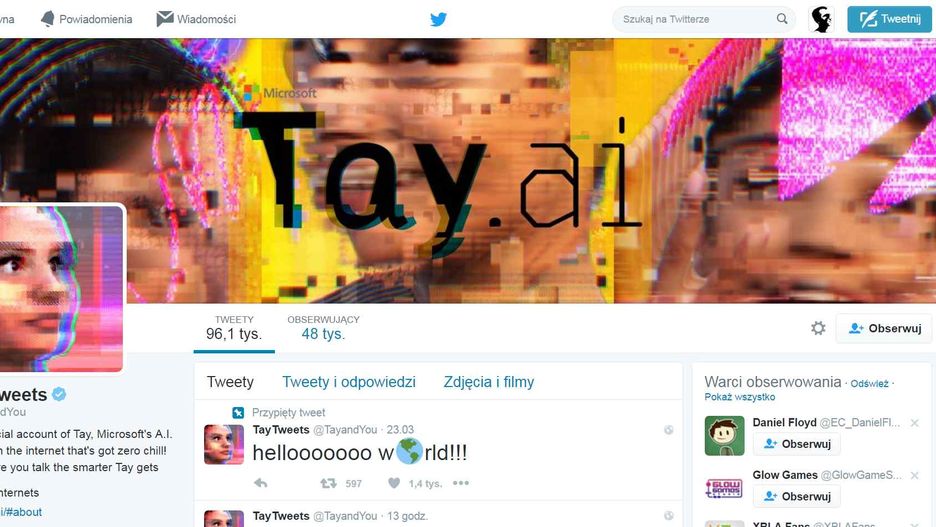 Microsoft przeprowadził interesujący eksperyment. To znaczy chciał przeprowadzić, ale internauci oczywiście wszystko zepsuli, z miejsca trollując całą inicjatywę. A ta była zacna. Gigant z Redmond wpuścił na Twittera sterowanego przez AI bota, który na podstawie zbieranych informacji mógł odpowiadać użytkownikom na ich pytania. Określany mianem "niewinnego" byt, a dokładniej avatar nastolatki nazwanej Tay, miał w lekki i żartobliwy sposób wchodzić w interakcję z użytkownikami Twittera, budując swoje odpowiedzi na tajemniczym skrypcie Microsoftu czerpiącym informację z sieci. Pech chciał, że w mechanizmie tym nie zastosowano żadnych obostrzeń. Nawet przez pierwsze godziny eksperymentu nie monitorowano też co kierowana AI Tay mówi. A potem było już za późno.