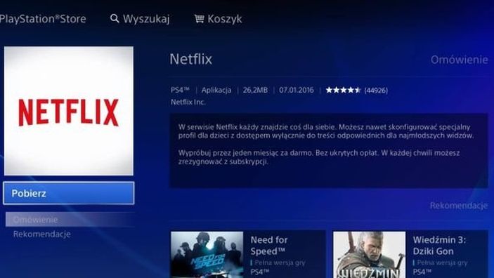 Dziś aplikacje są już dostępne dla polskich kont zarówno w Xbox Game Store jak i PlayStation Store. Ich pobranie to chwilka. Wystarczy akurat na dostrzeżenie dwóch ważnych informacji. Netflix oferuje darmowy miesiąc próbny i póki co jest u nas po angielsku.