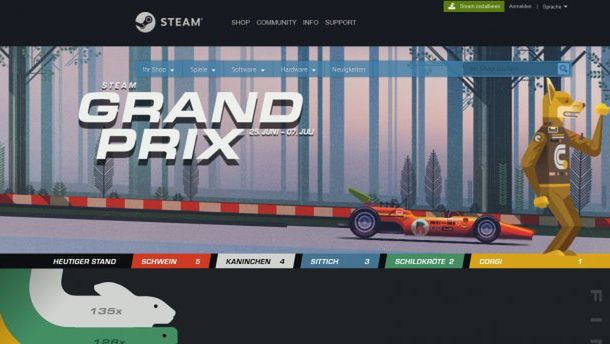 Tym razem padło na Grand Prix Steam. Do wyboru mieliśmy kilka randomowych zwierzęcych drużyn bieżących udział w wyścigu - Psy Corgi, Świnie, Żółwie, Zające, Papugi i coś tam jeszcze. Współzawodnictwo miało być równe, a wygrywające drużyny miały jakieś pomniejsze bonusy czy być kuszone darmową kopią najbardziej pożądanej przez siebie gry. Tylko, że twórcy nie przewidzieli, że połowa biorących udział albo jeszcze większy odsetek użytkowników zapisze się do team Corgi i zdominuje eventową minigierkę. Corgi wygrało chyba 9/10 wyścigów. Należałem, do tego teamu czysto z przypadku, kliknąłem na tą drużynę, która wygrywała pierwszego dnia. Czy coś z tego miałem? nie, ale nieprzemyślany mechanizm eventu był widoczny od pierwszego dnia.