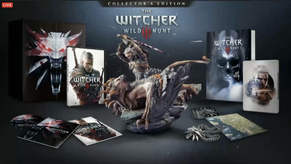 Edycja kolekcjonerska to dużych rozmiarów pudło, w którym oprócz płyty z grą i wszystkich przedmiotów właściwych dla standardowego wydania, znajdziecie także imponującą figurkę Geralta walczącego z gryfem. Ręcznie malowany gadżet trzeba będzie złożyć samemu z dwóch części - wszystko po to, by nie uległ zniszczeniu podczas transportu. Figurkę zaprojektowało mieszczące się w Gdańsku, polskie studio UDock. Poza tym w pudełku wersji kolekcjonerskiej znajdziemy 200-stronicowy artbook, steelbook z ekskluzywną grafiką, a także ciężki stalowy medalion.