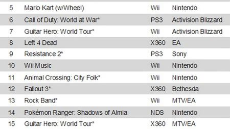 Co jako pierwsze rzuca się w oczy? Spadek Fable 2. Z miejsca pierwszego na 19? Musiało boleć. Ale w sumie i tak dobrze, że załapało się do tego zestawienia. Ciekawe jest też pojawienie się pierwszego Rock Banda na Wi, jak widać posiadacze tej konsoli chcą się bawić w tego typu gry i dobrze, że EA zdecydowało się wydać kontynuację swojej serii i na tę platformę. Jak widać - da się na tym sporo zarobić. Kolejną ciekawostką jest pojawienie się aż dwóch gier na PS2 i żadnej na PS3.