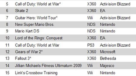 Tradycyjnie już Gamasutra dostała od NPD rozszerzoną listę najlepiej sprzedających się gier. Co widzimy w styczniu? Przed wszystkim tradycyjną dominację Nintendo - 11 z 20 miejsc należy do nich, z czego 9 to tytuły z Wii i 2 z DSa (te starocie). Microsoftowi udało się zdobyć 8 miejsc, Sony niestety tylko jedno (zresztą tak samo było w grudniu, Call of Duty: World at War to jedyna gra, która na PS3 utrzymuje się w top 20) . O grach z pierwszej dziesiątki już pisaliśmy, z kolei w drugiej nie za dużo się ciekawego dzieje. Wielki nieobecny - PSP.