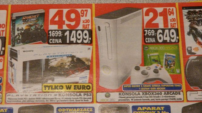 Obniżki w RTV EURO AGD Promocje pojawiły się też w RTV EURO AGD. W sklepach spadły ceny zarówno 360, jak i PS3. W przypadku Sony jest to zestaw z filmem 300 powiększony o pada i grę, zaś Xbox to po prostu model Arcade. marcindmjqtx5 grudnia 2008, 00:42ZAPISZ ZAPISANO UDOSTĘPNIJ Udostępnij na X Udostępnij na FacebookuSKOMENTUJ Dzięki, ols. Piotr Gnyp Źródło artykułu: wiadomości 360 ps3 promocje rtv euro agd +2SKOMENTUJ