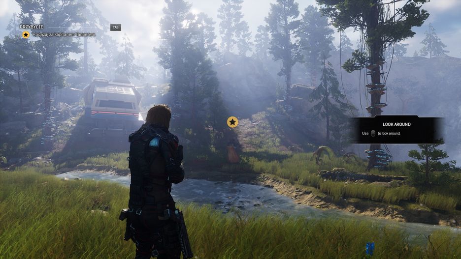 Pełne pop-upów i pewnej sztampy intro pasowałoby do klimatu japońskich produkcji (seria "Yakuza"?), ale nie swobodnego ducha strzelanek od PCF. Ale nawet bez tego wystarczyłoby, gdyby gra pokazała chociaż delikatnie pazur podczas tej krótkiej sekwencji strzelania. Jesteśmy Outriderem, elitą, która bada planety przed zasiedleniem. Czemu by nie dać takiemu komuś potężnej, napakowany modyfikacjami broni do ręki?