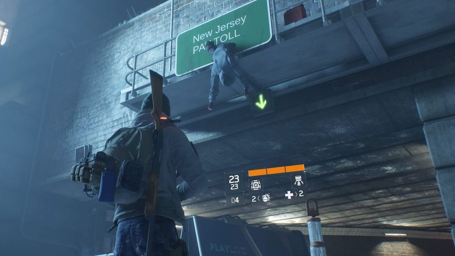 Miasto jest puste. No wiesz... zaraza, gangi. Pewnie. Ale nawet te gangi niespecjalnie szaleją tu poza wyznaczonymi strefami. Przez jakieś 3/4 gry na Manhattanie jest pusto i głucho. Jak plan filmowy, z którego zniknęli aktorzy, zostawiając na miejscu garstkę ćwiczących wciąż te same kwestie statystów.Pomiędzy "gorącymi" rejonami biegam (nie da się jeździć) zwykle na mentalnym autopilocie, pozwalając myślom dryfować. Wiem, że po drodze nic mnie nie zaskoczy. Wszystkie pary w Nowym Jorku powtarzają tę samą kłótnię, każdy potrzebujący otrzyma ode mnie wodę czy konserwę w zamian za punkty doświadczenia i jakiś przedmiot (najczęściej ciuchy), po jakimś czasie nie zatrzymuję się nawet by przegonic ludzkie sępy okradające zmarłego. Zrobiłem to już jakieś 238 razyNic nie zaskakuje też już na miejscu akcji. Ocean ikonek misji na mapie przestaje imponować, gdy okazuje się, że po wyczyszczeniu jednego rejonu, w każdym kolejnym są one identyczne. Uratuj zakładników, ukatrup poszukiwanego, biegaj jak z pęcherzem od jednej skrzyni zapasów do drugiej, gdy znikąd będą pojawiać się kolejni wrogowie, sprężaj się w czasówkach, w których by nacisnąć przycisk po drugiej stronie cienkiej siatki nie możesz jej sforsować siłą tylko musisz przebiec po dachach trzech budynków. Chciałbyś wejść do pomieszczenia przez okno obok? Nic z tego. Wszystkie okna na Manhattanie są kuloodporne. Oprócz tych wybitych. Nie, na ten murek też nie wejdziesz i nie przesmykniesz się po gzymsie...Dawno nie było chyba nic o gamizmach. The Division chce być produkcją z poważnym tłem i akcją osadzoną w prawdziwym, świetnie odzworowanym mieście, ale co chwila rozkłada ręce w przepraszającym geście "nie mogę ci pomóc, jestem tylko grą". W porządku, rozumiem. Ot, miałem nadzieję. Jak zawsze...
