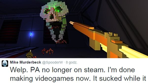 Co było powodem? Poniższy, już skasowany, wpis na Twitterze Mike'a Maulbecka, jednego z duetu twórców, w którym grozi śmiercią szefowi Valve.