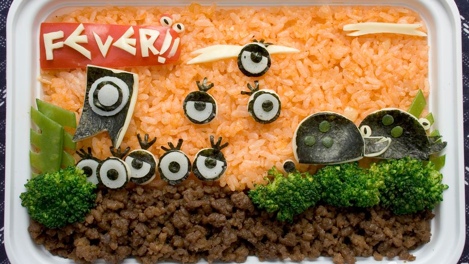 Tworząc poprzedni i ten wpis korzystając z nieobecności TŻ, opycham się nachosami marząc o porządnej, ciepłej kolacji. I w takim momencie wpadłem na to - bento, w którym odwzorowano scenę z Patapona. Co prawda te posiłki zajada się na lunch, ale w takim przypadku zrobiłbym wyjątek. Smażony ryż z keczupem, brokuły, nori, żółty ser, mięsko mielone... Nic, tylko schrupać w całości. A potem żałować, że zepsuliśmy całodzienny wysiłek. Więcej zdjęć tutaj.