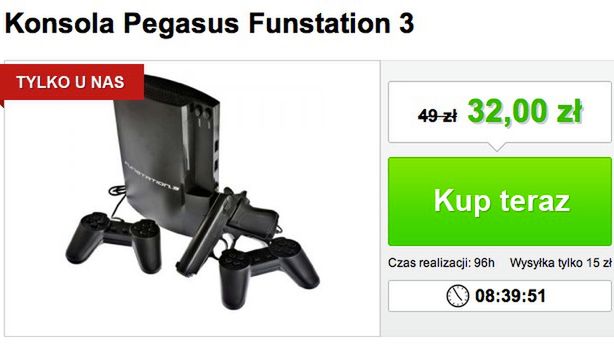 "Pamiętasz legendarną konsolę Pegasus? Teraz powróciła w nowym wydaniu! Te same co wtedy Gry, oraz wiele nowych pozycji." czytamy w opisie produktu... Niestety nie udało nam się dowiedzieć jakie to są nowe gry. Nikt tego nie wie. Zastanawiające jest ostatnie zdanie: "Konsola zapewni Ci realne wrażenia z gry!". No ale może ktoś z Was się skusi.