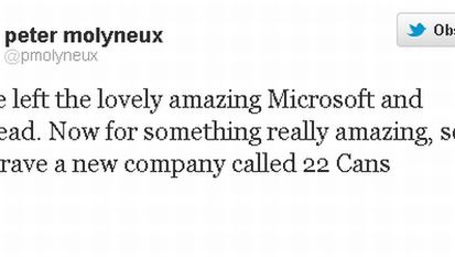 O całym wydarzeniu Molyneux poinformował na swoim Twitterze. Tym samym opuszcza on nie tylko Microsoft, ale także studio Lionhead, które założył w 1997 roku (w 2006 r. jego właścicielem stał się właśnie MS).