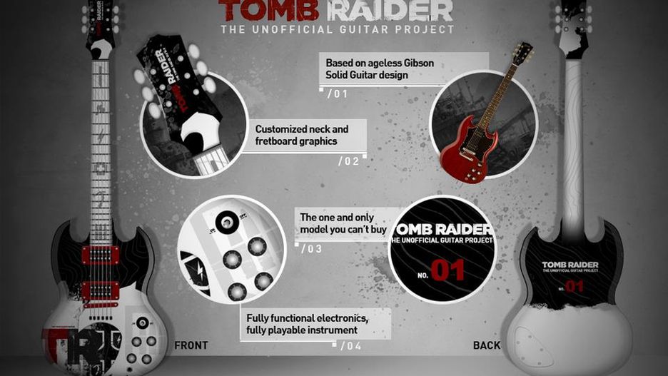 Nad niezwykłą, inspirowaną nową odsłoną Tomb Raidera gitarą pracują Marcin Pośpiech oraz Artur Walczak. Ten drugi na co dzień zajmuje się lutnictwem, pomysł natomiast pochodzi od tego pierwszego, który normalnie pracuje w Square Enix w Londynie. Współtworzył zresztą także samą grę, ale ten projekt nie jest związany z jego pracą, to prywatna inicjatywa. Gitara ma także wsparcie ze strony Maegan Marie z samego Crystal Dynamics.