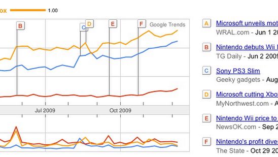 Oczywiście można też zastosować inną kombinację kluczowych słów. "Xbox 360" jest mniej popularne od PS3, zaś PlayStation 3 znajduje się gdzieś w okolicy Wii.