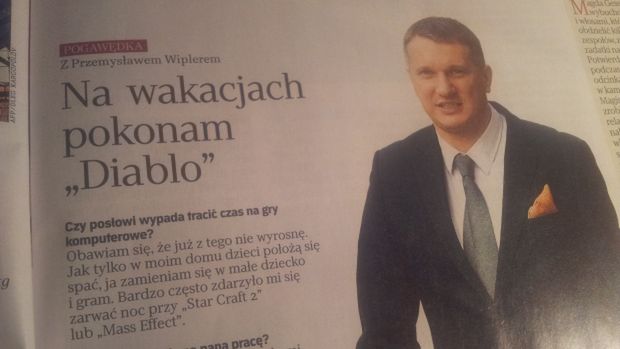 Wręcz przeciwnie! Gry pomogły mi w podjęciu wielu słusznych decyzji. Gdy pracowałem w Ministerstwie Gospodarki, rekrutowałem pracowników, zadając im pytania z tematyki gier komputerowych, np. "Grasz w Baldur's Gate - musisz skompletować drużynę, z którą wyruszysz na wyprawę. Kogo wybierzesz? Odpowiedź na takie pytanie wiele mi mówiła o metodach zarządzania aplikanta. Bardzo jestem wobec tego ciekaw jaki był najlepszy z punktu widzenia Wiplera zestaw postaci, ale o to Daniel Orzechowski już nie zapytał. Na koniec wywiadu stwierdził tylko, że poseł "powinien się oderwać od monitora", na co ten odparł, że "ani myśli", a następną grą, która na niego czeka, jest Diablo 3.