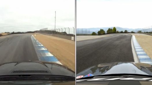 Wideo z przejazdu po wirtualnym i prawdziwym torze Laguna Seca może spowodować szybsze bicie serca u motomaniaków.