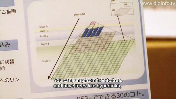 Pierwsza technologia pozwala PS3 i PSP na bardzo łatwe przybliżanie bardzo dużych obrazów, w których mogą być ukryte kolejne obraz lub filmy, które są skalowane do wielkości ekranu. Na razie wykorzystano to w programie będącym interaktywnym kalendarzem premier (do pobrania z japońskiego PS Store). Wydaje mi się, że mogłoby się to również pojawić w choćby nowej zakładce What's New, dzięki czemu Sony nie odsyłałoby nas do stron WWW. Technologia ta ma pojawić się w następnym SDK i być dostępna dla wszystkich deweloperów. Ciekawe czy ktoś ją zastosuje w jakiś interesujący sposób.