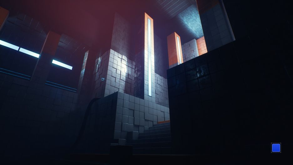 Barwy nie są przypisane na stałe, możemy dowolnie je zmieniać. Daje to całkiem szerokie pole do popisu dla zagadek przestrzennych – zielony klocek spuszczony z sufitu zostaje odepchnięty przez niebieską energię w stronę wysuniętej daleko czerwonej półki. Widok całego procesu, kiedy to uruchamiacie skomplikowany mechanizm i rozbijacie klockiem ścianę, która odgradzała Was od korytarza, jest przyjemny.Później pojawiają się inne sposoby manipulacji, np.możemy oblać coś czarną cieczą, która powoduje poślizg oraz sprawia, że dana rzecz staje się łatwopalna. Niestety, nie rozwijamy zdolności rękawic o dodatkowe kolory. Żałuję, bo widzę w tym potencjał do wielu szalonych działań z materią. Moglibyśmy powiększać sześciany, teleportować je, robić ruchome trampoliny, bomby, zamieniać wszystko w motylki chaosu, cokolwiek.Dobrze, ale jak motywowane są zagadki? Otóż, naszym zadaniem jest przywrócenie zasilania w różnych częściach kompleksu.W trakcie gry uruchomiłam tyle generatorów, że starczyłoby energii dla niejednej Gwiazdy Śmierci. Układ poziomów jest zawsze ten sam – główna sala z wielkim walcem pośrodku, od którego odchodzą jakieś rury. Walec jest wygasły i smutny, więc trzeba go uruchomić. Rury prowadzą do 4 albo 6 drzwi, za którymi czekają pomieszczenia o dość podobnej powierzchni (poza kilkoma wyjątkami, kiedy znajdujemy się w naprawdę sporej lokacji). Rozwiązuję zagadki, co daje mi dostęp do jakichś takich niewyględnych kwadratowych urządzeń, które trzeba pacnąć; wtedy rurą popłynie zielona albo niebieska ciecz. Wracam do głównego pomieszczenia z walcem i ruszam na podbój innych pomieszczeń. Kiedy generator już działa, wsiadam do windy, która zawozi mnie do... kolejnego wielkiego pomieszczenia z walcem pośrodku.