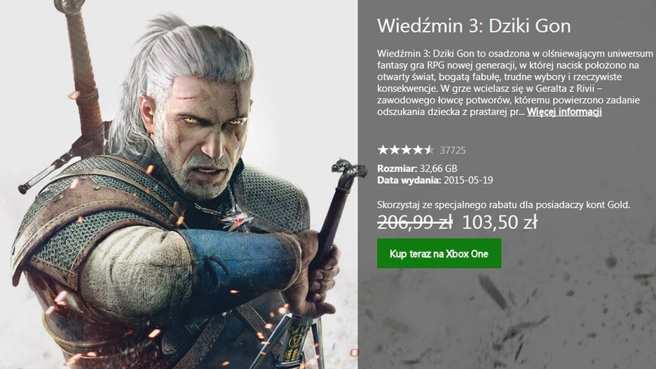 W cyfrowym sklepie Microsoftu Wiedźmin 3 kosztuje 103,50 zł. Batman: Arkham Knight 188,49 zł, Far Cry 4 79 zł, Rare Replay 64,99 zł, a Dark Souls 2: Scholars of the First Sin 105 zł. Jest też zestaw składający się z Forza Motorsport 6 oraz Gears of War: Ultimate Edition w cenie 245,69. Ale i tak zachęcam Was do rzucenia okiem na przeceny na własną rękę. Jest w czym wybierać.