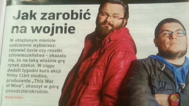 This War of Mine to gra ambitna, a pod wieloma względami także wybitna. Perła, z której powinniśmy być dumni, tym bardziej, że mimo niełatwego tematu okazała się także sukcesem biznesowym. Cieszy mnie, gdy widzę ją w mediach niezajmujących się na co dzień grami, cieszy, gdy widzę, że straszny mainstream nie połakomił się na pisanie o tanich kontrowersjach w ciągle powstającym Hatred, że woli coś naprawdę ważnego zamiast sensacji. Weźmy takiego Newsweeka - w najnowszym numerze są całe dwie strony o This War of Mine (trzy, jeśli liczyć z tytułową). Fajnie!...