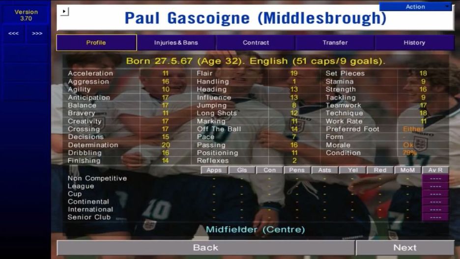 Championship Manager 99/00. Jeszcze grał Paul Gascoigne