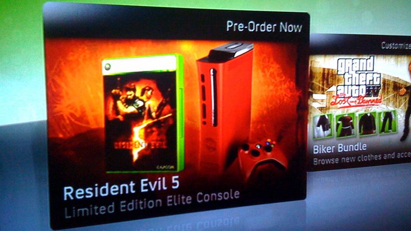 Dzisiejszego poranka mamy dla Was również garść informacji dotyczących Resident Evil 5. Zacznijmy może od potwierdzenia się plotki o zestawie z czerwonym Xboksem 360. Skąd o tym wiemy? Cóż, w interfejsie głównym pokazała się odpowiednia reklama. Zresztą - na dowód zdjęcie powyżej. W jego skład będzie wchodzić, rzecz jasna, czerwona konsola Elite, czerwony bezprzewodowy pad, gra, przewodowy headset, ekskluzywny temat z gry i Super Street Fighter 2 Turbo HD Remix. Ponieważ informacje możemy znaleźć jak na razie jedynie na amerykańskim Xbox LIVE, w związku z czym nie znamy daty ani ceny pojawienia się tej wersji konsoli w Polsce. Zapytaliśmy się naszego oddziału o to i czekamy na odpowiedź. Nie zmienia to jednak faktu, że moim zdaniem, konsola wygląda brzydko. Serio, nie dałoby się zrobić półprzezroczystych obudów, jak to miało przy poprzednim Xboksie?