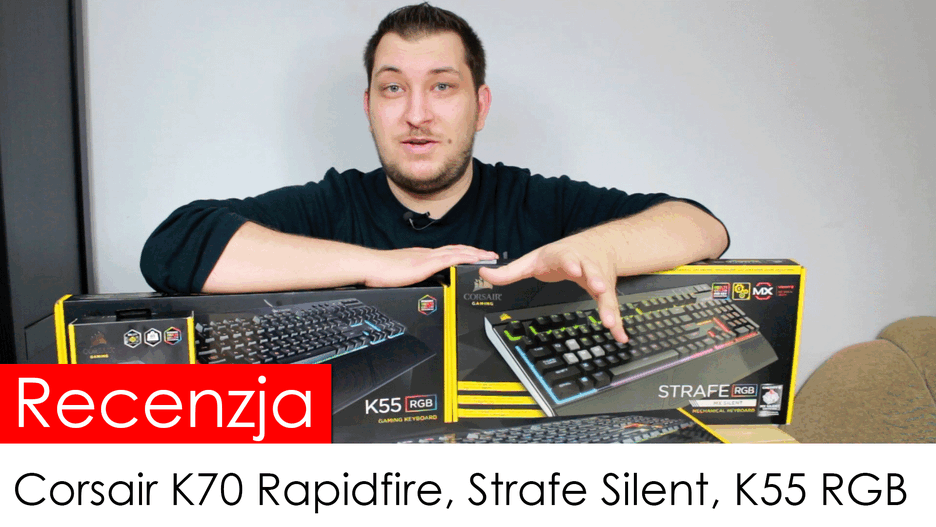- Corsair K70 Rapidfire, czyli najszybsza klawiatura mechaniczna na rynku [Uwaga, szybko zbiera kurz i odciski palców - nie czyściłem, by pokazać, że to prawda :D] - Corsair Strafe Silent RGB, czyli nowa klawiatura o cichych przełącznikach mechanicznych - K55 RGB, czyli membranowa ekspansja korsarza - Harpoon RGB, czyli niedrogą myszkę z rewelacyjnym sensorem