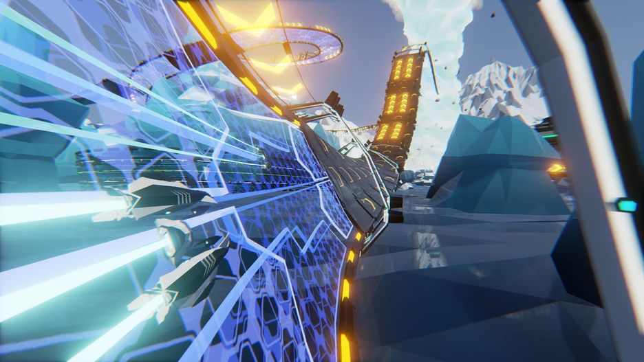 A ta jest oszałamiająca i wymagająca, dodatkowo ścigaczem trzeba sterować nie tylko w poziomie, ale i pionie. Trasy są tak pozawijane, że bez kontrolowania nachylenia statku często będziemy szorować dziobem o nawierzchnię. Lewy analog trzeba odchylać więc nie tylko w prawo i lewo, ale też górę i dół. Spustami przechylamy się natomiast na boki (strafe'owanie) w zakrętach. Spustami w alternatywnym obłożeniu pada. Te domyślne jest wyjątkowo nieżyciowe (sterowanie dwoma analogami jednocześnie, bo gra początkowo wymaga operowania też prawą gałką) i z miejsca radzę je zmienić.Prędkość Redouta oszałamia, co w połączeniu z powykręcanymi trasami i piękną, ale nieco uproszczoną grafiką momentami przypomina gry typu Frequency. Muzyka jest tylko tłem, jej rytm nie zależy od naszych działań (ale tempo odtwarzania już tak), ale analogie same się narzucają. Jeżeli natomiast trochę zwolnimy, to zauważymy, że trasy ulokowano właściwie we wszystkich możliwych strefach klimatycznych i realiach. Są pustynie z przecinającymi trasę burzami piaskowymi, są miasta, tropikalne dżungle i skute lodem rejony. Jednocześnie całość jest o wiele bardziej futurystyczna niż ostatni WipEout.Ciekawie wypada oprawa - pełna kolorów, ale też uproszczeń, będąc takim miksem The Witness z Boundem. Podobnie jak w tej pierwszej grze z ekranu wylewają się pastelowe barwy. I tak jak w tej drugiej, wszystkie obiekty, ze statkami i chmurami na niebie włącznie, mają mocno uproszczoną geometrię (tzw. styl "low-polygon" zderzony z graficznymi fajerwerkami UE4). Akurat to nie do końca mi się spodobało, ale rozumiem zamierzenia twórców. Mniej szczegółowe elementy wymagają mniejszego nakładu pracy i budżetu. A przy TEJ prędkości pójście na graficzne skróty nie rzuca się w oczy.Wracając jeszcze do tras, świetnym urozmaiceniem jest to, że pojedyncze pętle w niektórych eventach się ze sobą łączą. Co jakiś czas na całej szerokości drogi znajduje się teleport, który przenosi nas na przykład z pustyni do dżungli. Wlatując w takie pole nie ma się pojęcia gdzie się pojawimy, a już po pokonaniu pola siłowego trzeba natychmiast przypomnieć sobie układ konkretnego odcinka. Bardzo fajna rzecz. W przeciwieństwie do muzyki. O ile przy dużej prędkości nie widać, że Redout nie miał zbyt imponującego budżetu, tak cały czas to słychać. Elektroniczne, podrygujące gdzieś na styku house’u z techno kawałki brzmią trochę jak stockowa muzyka z internetu, na którą za kilka dolców można kupić sobie licencję.Redout nie jest nowym WipEoutem, ale pozwolił poczuć mi to samo, co towarzyszyło mi podczas ścigania się w WipEoutach. A to już coś. Coś, co bardzo chciałbym powtórzyć z innymi, niegdyś wysokobudżetowymi, a dziś wymarłymi wyścigami. Niezależny Burnout? Duchowy spadkobierca FlatOuta? Nawet jeżeli wzorem Redouta byłyby trochę technicznie uproszczone, to bardzo chętnie bym ich spróbował.