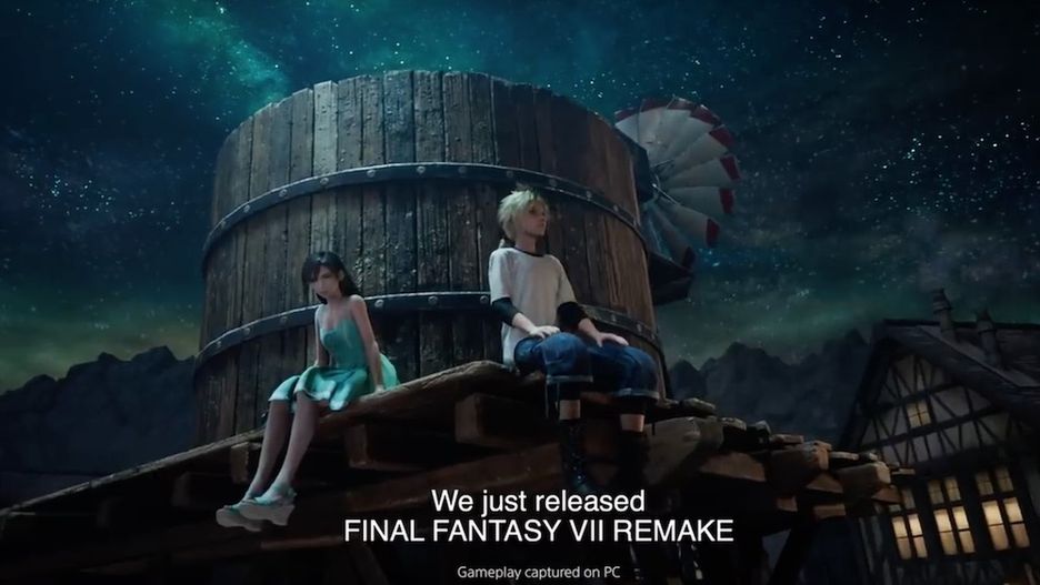 Istotniejsze jest jednak to, co wyświetla się jako tło do jego wypowiedzi, a są to fragmenty rozgrywki z remake'u Final Fantasy VII. Na dole jednego z nich zobaczyć można wyraźny i niepozostawiający wątpliwości napis "Rozgrywka przechwycona na PC".