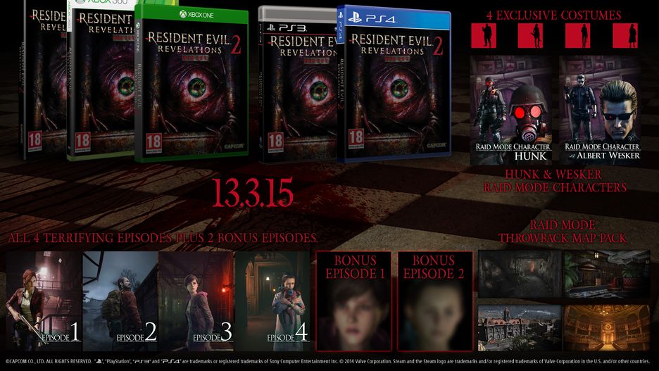 Z kolei 13 marca gra ukaże się w wersji pudełkowej. Będzie w niej nie tylko to, co gracze dostaną przy zakupie kompletnego sezonu, ale także Albert Wesker do wykorzystania w trybie Raid, cztery dodatkowe kostiumy dla czterech głównych postaci oraz cztery dodatkowe mapy do trybu Raid, które fani serii rozpoznają z poprzednich odsłon Resident Evil.