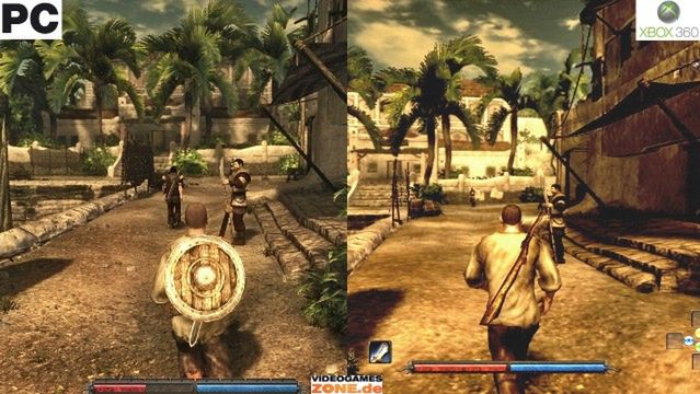 O ile wersja pecetowa dostaje dość pozytywne (choć nie oszałamiające) recenzje, szczególnie ze strony fanów Gothica, o tyle na wersji na 360, nad którą pracowało nie Piranha Bytes, a francuskie studio Wizardbox, nikt nie pozostawia suchej nitki. Jeśli chodzi o grafikę, sami widzicie powyżej, jak słabo prezentuje się gra nie tylko w porównaniu z wersją pecetową, ale choćby z Oblivionem sprzed trzech lat (więcej obrazków znajdziecie w niemieckim serwisie VideoGamesZone). I choć wiem, że wygląd nie jest najważniejszy, to niestety nie chodzi wyłącznie o grafikę - wygląda na to, że oprócz tego całkowicie skopane jest również sterowanie. Wersja na 360 jest też bardziej najeżona błędami niż pecetowa.