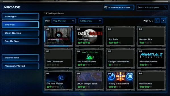 Arcade przynosi ze sobą zupełnie nowy sposób organizacji dostępnych w StarCrafcie 2 map tworzonych przez graczy. Wyszukiwanie ich ma być łatwiejsze, można je komentować, oceniać - w przyszłości pojawi się także możliwość wynagradzania autorów za ich pracę.