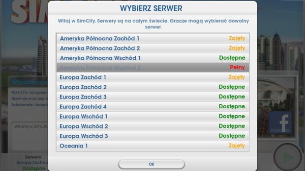 I nam udało się błyskawicznie zalogować do SimCity. Nie było kolejki na serwerach, gra nas nie wyrzucała (choć jeszcze nie mieliśmy okazji na baaardzo długie testy - te dopiero przed nami). Zamieszczony obrazek pokazuje zresztą, że najgorzej sytuacja wygląda we wspomnianym USA.