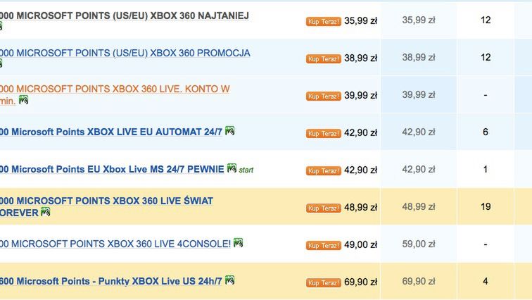 Od dłuższego czasu na popularnym serwisie aukcyjnym pojawiają się atrakcyjne oferty nabycia Microsoft Points, które są tańsze, a czasami dużo tańsze niż zdrapki, które możemy kupić w sklepach. Dodatkowo kod przychodzi do nas w chwilę po zaksięgowaniu wpłaty na podane konto. Jak to jest możliwe?