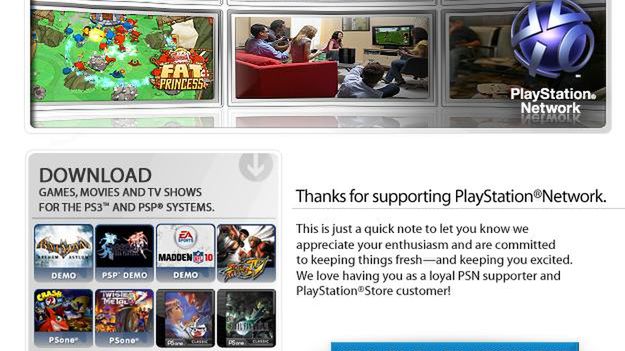 SCEA postanowiło podziękować swoim klientom w bardzo specyficzny sposób. Odpowiednio przygotowany mail rozsyłany niby wybranym użytkownikom PSN reklamuje PS Store. Przyznam, że w ramach podziękowania za wydawanie małej fortuny w sklepiku Sony wolałbym otrzymać coś innego niż kolejną reklamę tegoż właśnie sklepu. To chyba jakaś nowa forma marketingu...