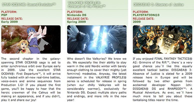 - Star Ocean: Second Evolution (PSP) - początek 2009
