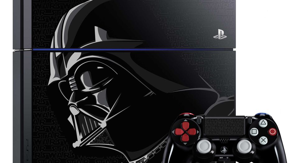 Podstawowy - zdobiona kaskiem Vadera konsola z dyskiem 500 GB, zwykłym kontrolerem oraz kopią Star Wars: Battlefront.