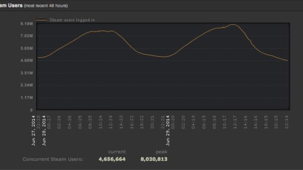 W czasie ostatniego dnia letniej wyprzedaży odczyty steamowych statystyk wskazywały na dokładnie 8 020 813 osób zalogowanych w tym samym momencie. Miało to miejsce wczoraj około godziny 12:00 czasu PDT (21:00 czasu CEST - naszego).