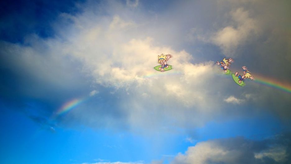 Zdziwieni? To jeszcze nie wszystko. Otóż rzeczona gra nazywa się "Party Wave" i pierwszy obrazek promocyjny wskazuje, że będą w niej surferzy. Surferzy tęczy. Na niebieskim, letnim niebie. Yaaaayyy...