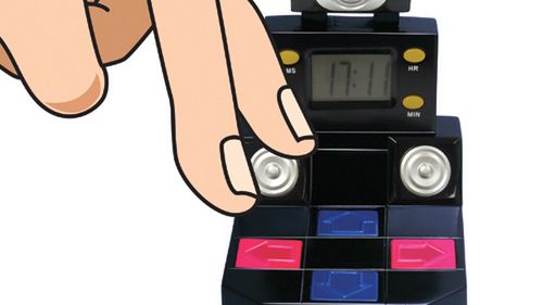 Jakie dźwięki budzą Was co rano? A może jesteście farciarzami, którzy się wysypiają i wstają kiedy chcą? Ja postawiłem na dość prosty, ale radykalny dzwonek z iPhone'a - taki fabryczny alarm. Z chęcią zamieniłbym go jednak na to, co widzicie wyżej - DDRowy budzik z radiem, który nie przestanie grać, dopóki nie "zatańczymy" na nim palcami krótkiej sekwencji. Zakup tego, to już prawdopodobnie ostatni stopień zmaniaczenia Dance Dance Revolution. W razie czego, od września szukajcie tutaj.
