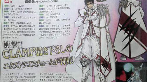 Fani mangi z pewnością kojarzą kobiecą grupę rysowniczek CLAMP. Muszę przyznać się, że nigdy fanem ich twórczości nie byłem i zatrzymałem się na etapie X, RG-Vedy czy Magic Knight Rayearth. Babeczki wciąż jednak muszą być na fali (coś ich leci w tym sezonie?), skoro Namco Bandai ogłosiło na łamach Famitsu, że stworzą one dodatkowe, ekskluzywne dla PS3 stroje do Tekkena 6. Jako pierwszego poznaliśmy Jina Kazamę w fantazyjnym, ułańskim wręcz mundurze. Z niecierpliwością czekam na więcej... Not.
